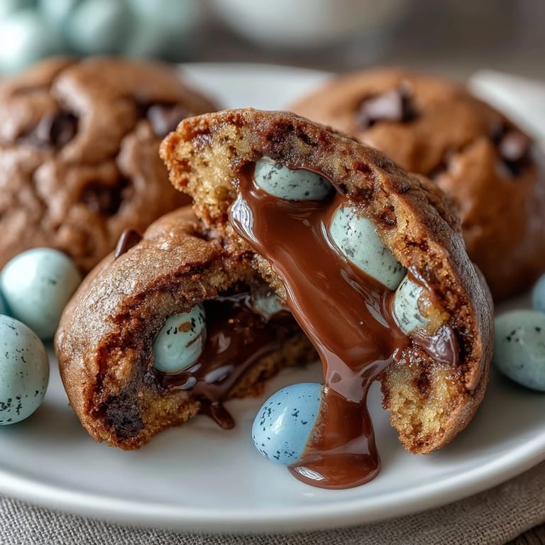 For the best results, make sure your butter is properly softened to room temperature before beginning—this ensures it creams smoothly with the sugars for optimal texture. When chopping the Cadbury Mini Eggs, use a sharp knife and a gentle rocking motion to avoid crushing them into powder; you want a variety of chunk sizes for interesting texture. Don't skip the 5-minute cooling period on the baking sheet, as this allows the cookies to set properly without breaking. If you prefer slightly thicker cookies, chill the dough for 30 minutes before scooping and baking.