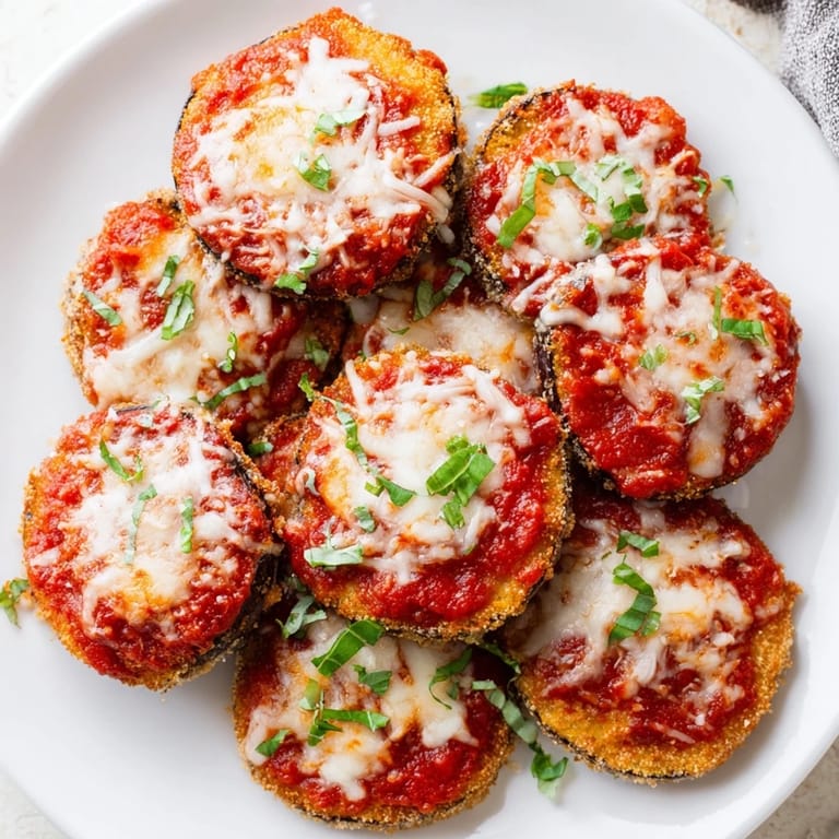 Save Dive into the heart of Italian comfort food with this classic Eggplant Parmesan. This beloved recipe features layers of perfectly crispy, golden-brown eggplant slices, nestled between a rich, savory marinara sauce and a generous blanket of melted mozzarella and Parmesan cheese. It's a dish that promises warmth, satisfaction, and a taste of tradition in every single bite, baked to bubbly perfection.