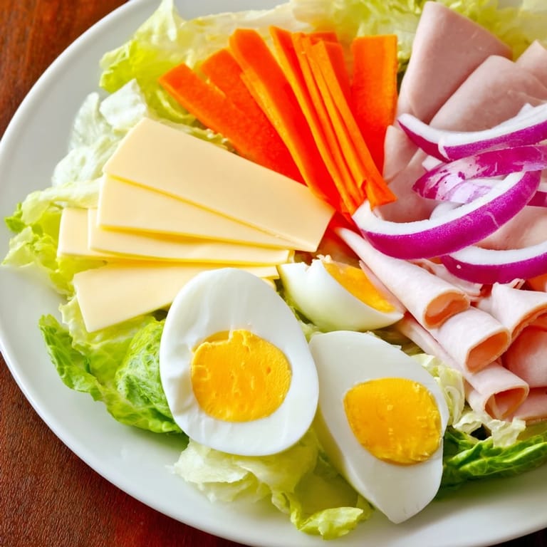 The beauty of chef salad is its adaptability. I have substituted roast beef or grilled chicken for the turkey and ham depending on what was in the refrigerator. The key is keeping the variety of textures and flavors so every bite feels interesting.