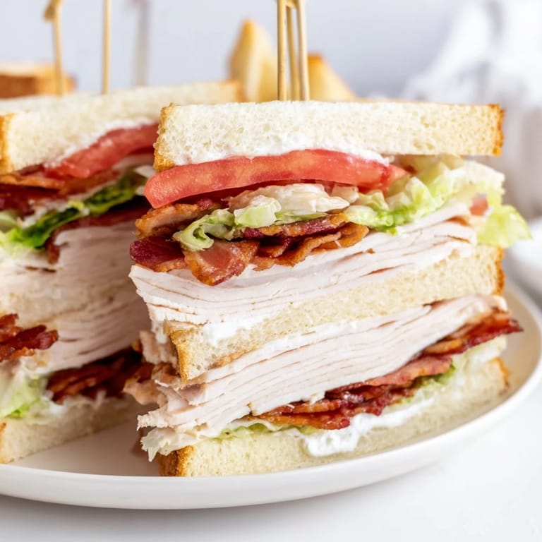 Save Last Sunday, I was rushing between errands and starving when I remembered my grandfather's go to lunch. He never made single decker sandwiches, claiming triple layers were the only respectable way to serve club sandwiches. I threw together this turkey version in twenty minutes, taking that first messy bite while leaning against the kitchen counter, and suddenly understood his philosophy completely.