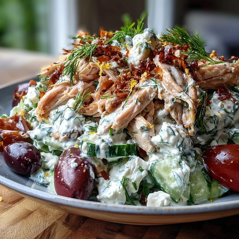 Save I started making this salad on Sunday afternoons when I had leftover rotisserie chicken and no energy for complicated meals. The cucumber would sit on my cutting board, already sweating from the warmth of the kitchen, and I'd squeeze handfuls of it over the sink, always amazed at how much water comes out. That first biteβcool, tangy, with just enough garlic to wake you upβmade me realize that sometimes the best recipes are the ones that don't ask much of you but give everything back.
